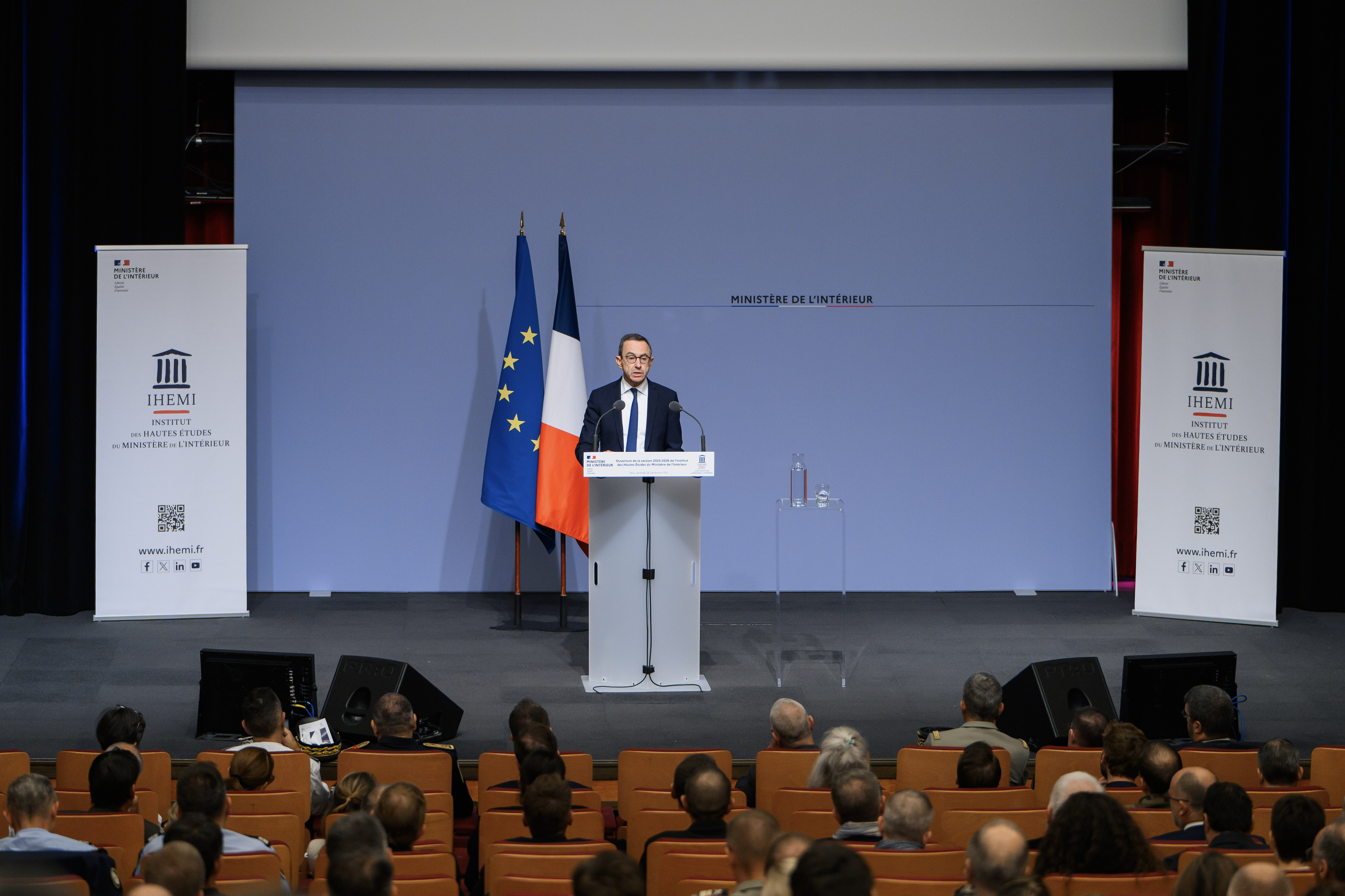 Bruno Retailleau, ministre d'Etat, ministre de l'Intérieur, a présidé cette rentrée et souligné le rôle clé de l'Institut : offrir un espace de réflexion et de formation unique, à l'écart de l'urgence qui domine souvent l'action publique, afin de nourrir les idées, les analyses et les réflexions utiles aux politiques publiques portées par le ministère de l'Intérieur. Une mission plus que jamais essentielle au regard des défis actuels de sécurité intérieure et de justice, de gestion de crise, d'intelligence et de sécurité économique, de management, d'intelligence artificielle ou encore de citoyenneté.